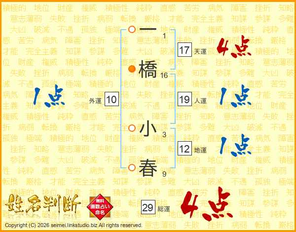 一橋小春さんの天運は17画の4点!