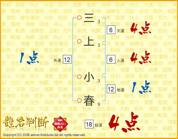 三上小春さんの総運は18画の4点!