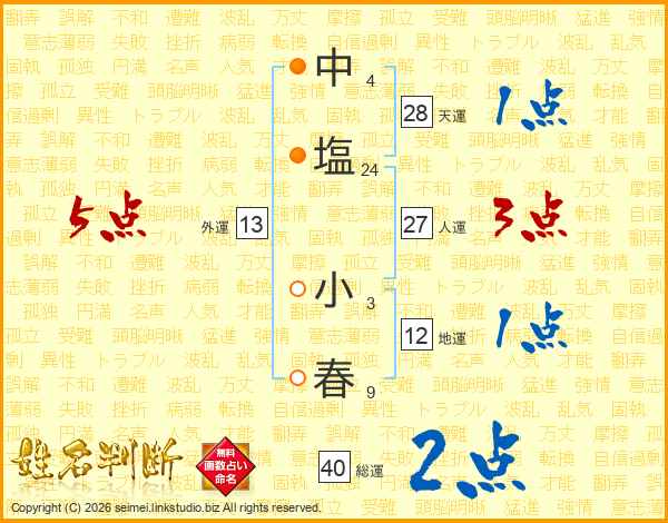 中塩小春さんの総運は40画の2点!