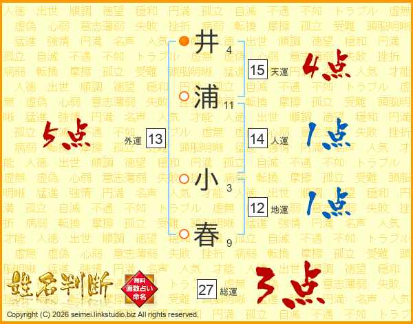 井浦小春さんの総運は27画の3点!