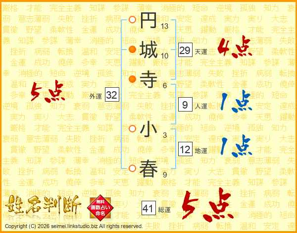 円城寺小春さんの総運は41画の5点!