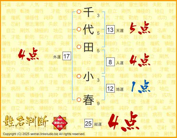 千(3画)代(5画)田(5画) 小(3画)春(9画)