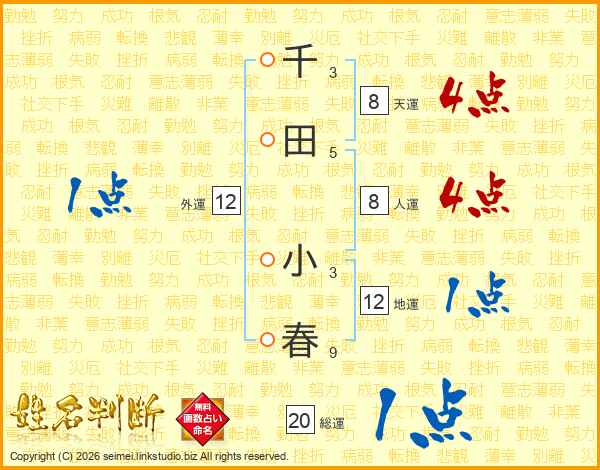 千田小春さんの総運は20画の1点!