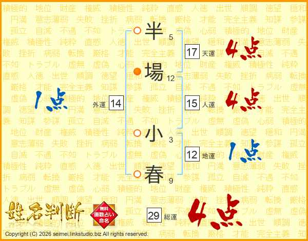 半場小春さんの総運は29画の4点!