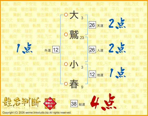 大鷲小春さんの総運は38画の4点!