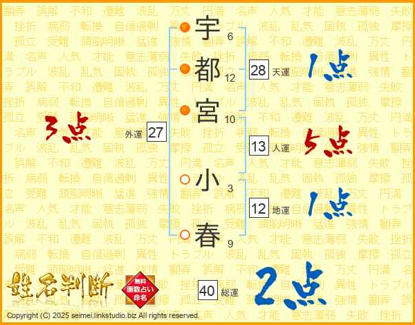 宇都宮小春さんの総運は40画の2点!