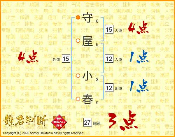 守屋小春さんの外運は15画の4点!