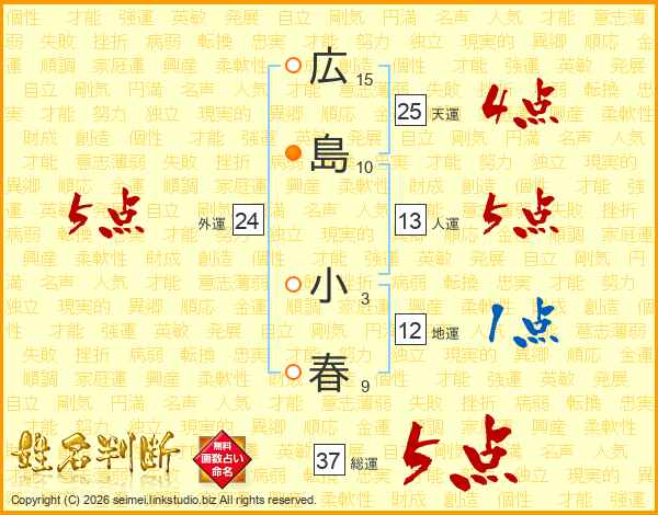 広島小春さんの総運は37画の5点!