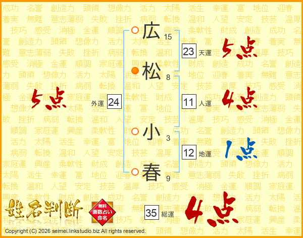 広(15画)松(8画) 小(3画)春(9画)