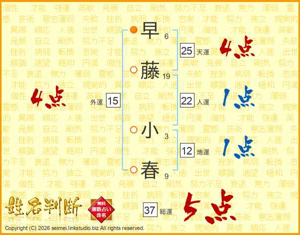早藤小春さんの総運は37画の5点!