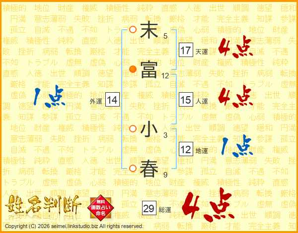 末富小春さんの天運は17画の4点!