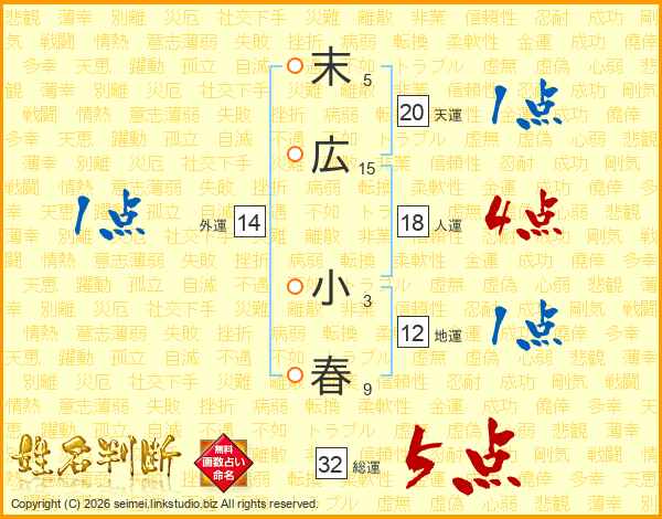 末広小春さんの天運は20画の1点!