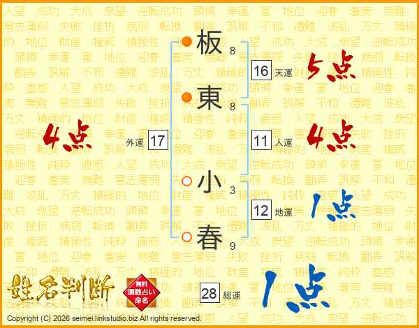 板東小春さんの総運は28画の1点!