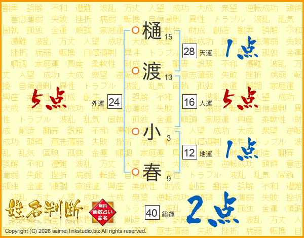 樋渡小春さんの外運は24画の5点!