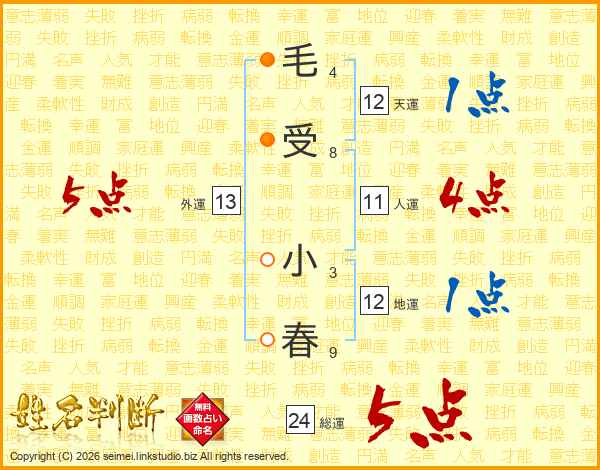 毛受小春さんの天運は12画の1点!