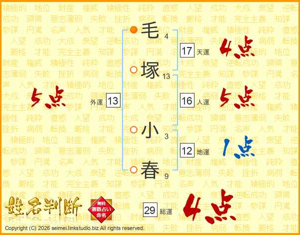 毛塚小春さんの総運は29画の4点!