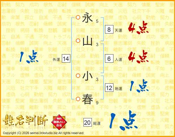 永山小春さんの総運は20画の1点!