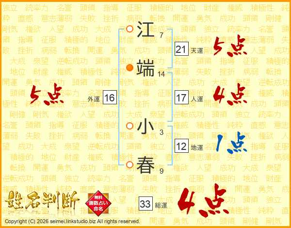 江端小春さんの総運は33画の4点!