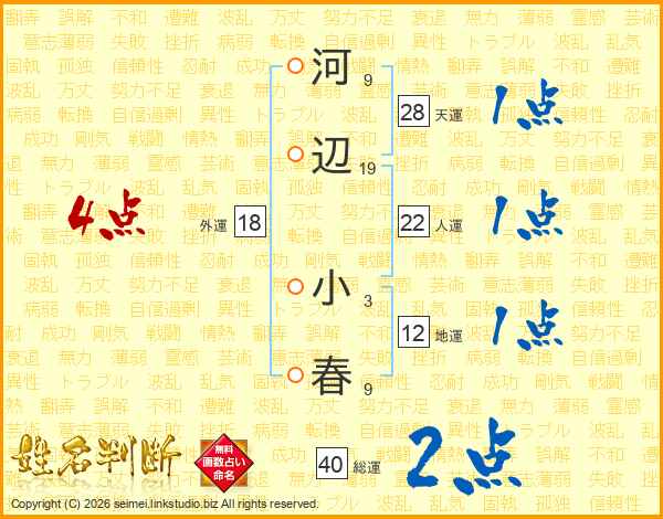 河辺小春さんの総運は40画の2点!