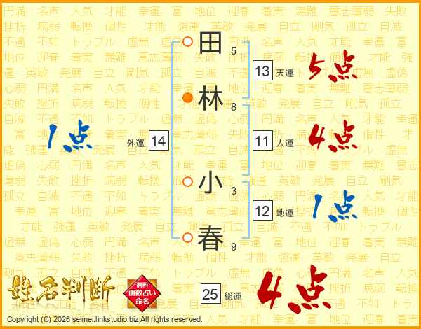 田林小春さんの総運は25画の4点!