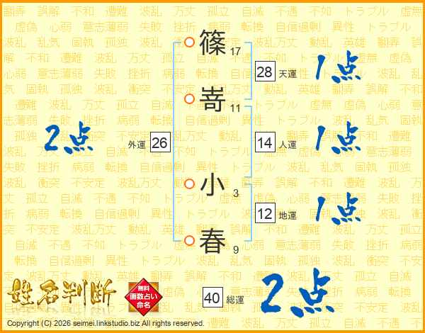 篠(17画)嵜(11画) 小(3画)春(9画)