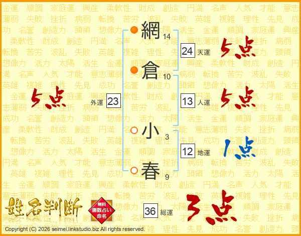 網倉小春さんの天運は24画の5点!