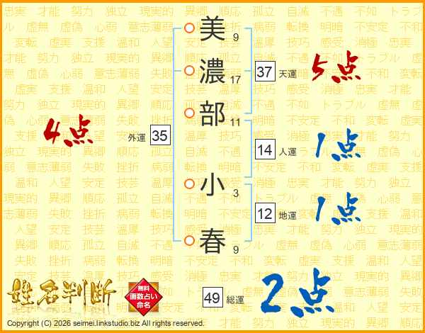 美濃部小春さんの総運は49画の2点!