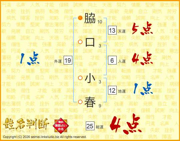 脇口小春さんの総運は25画の4点!