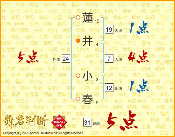 蓮井小春さんの総運は31画の5点!