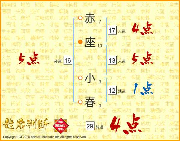 赤座小春さんの総運は29画の4点!