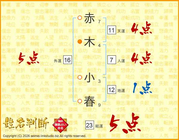 赤木小春さんの外運は16画の5点!