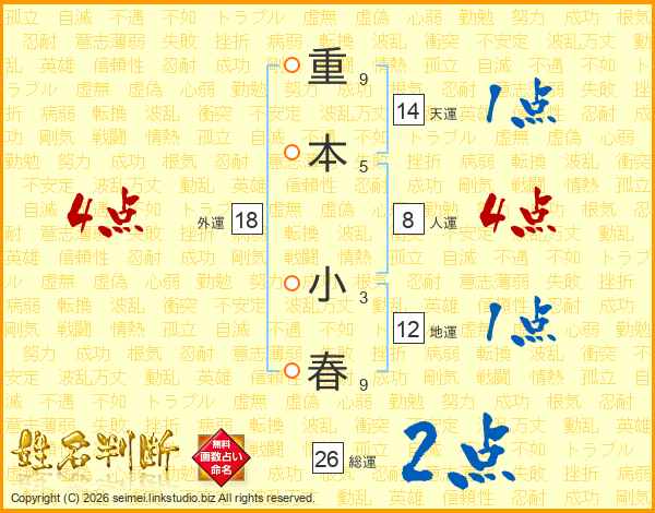 重本小春さんの外運は18画の4点!