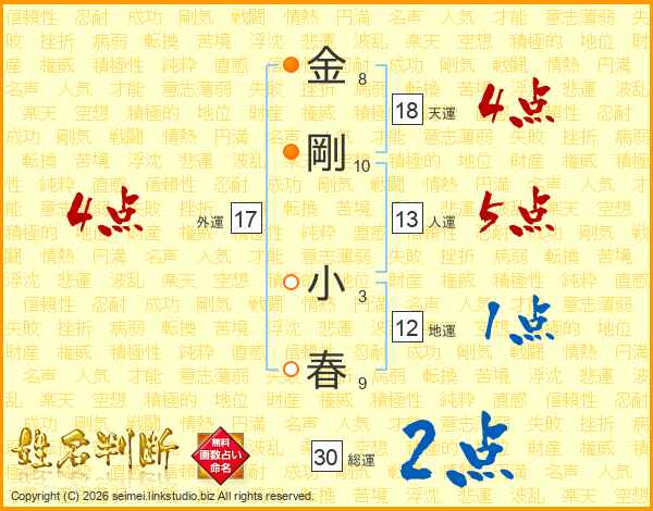 金剛小春さんの天運は18画の4点!
