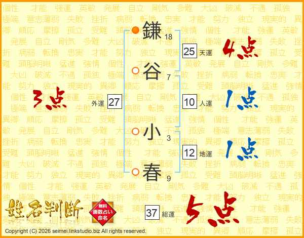 鎌谷小春さんの総運は37画の5点!