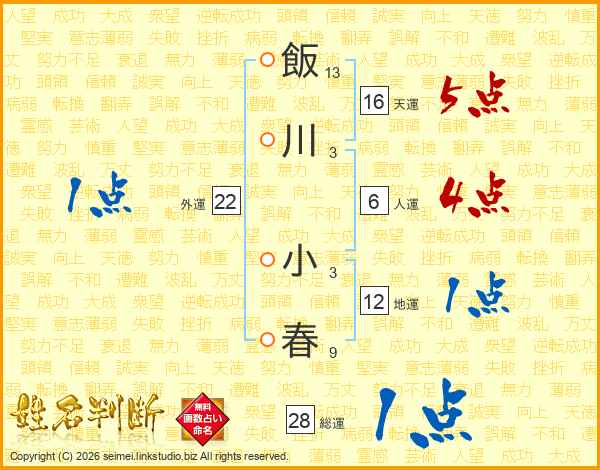 飯川小春さんの総運は28画の1点!
