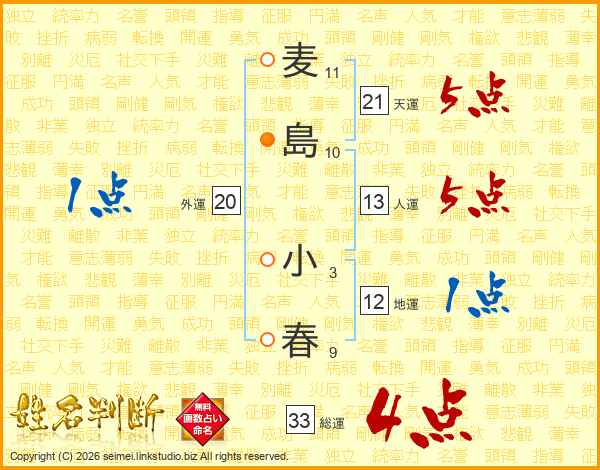 麦島小春さんの総運は33画の4点!