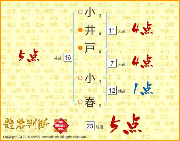 小(3画)井(4画)戸(4画) 小(3画)春(9画)
