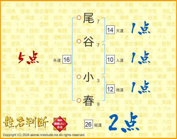 尾谷小春さんの外運は16画の5点!