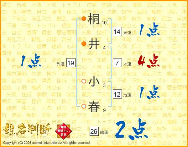 桐井小春さんの総運は26画の2点!