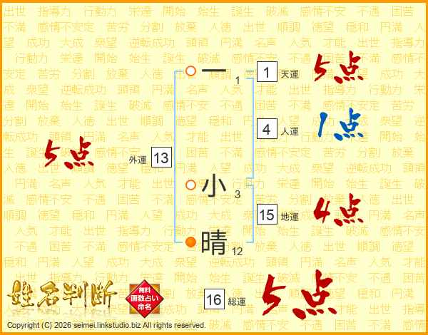 一小晴さんの総運は16画の5点!