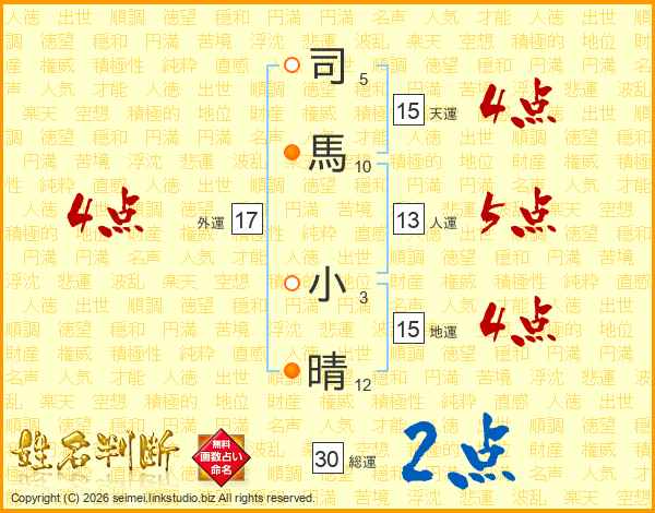 司馬小晴さんの外運は17画の4点!