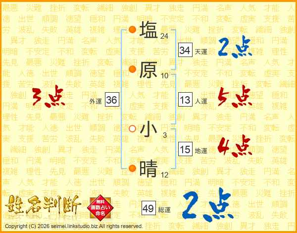 塩原小晴さんの外運は36画の3点!