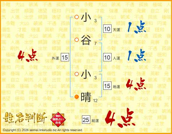 小谷小晴さんの総運は25画の4点!