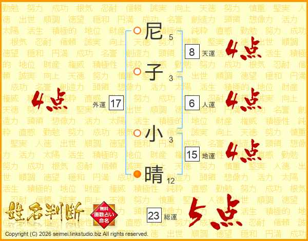 尼子小晴さんの総運は23画の5点!