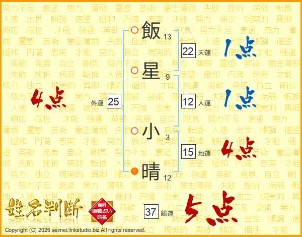飯星小晴さんの総運は37画の5点!