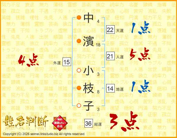 中濱小枝子さんの外運は15画の4点!