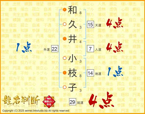 和(8画)久(3画)井(4画) 小(3画)枝(8画)子(3画)