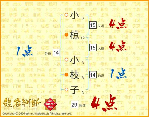 小椋小枝子さんの総運は29画の4点!