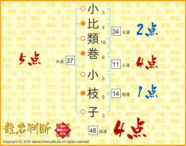 小比類巻小枝子さんの外運は37画の5点!