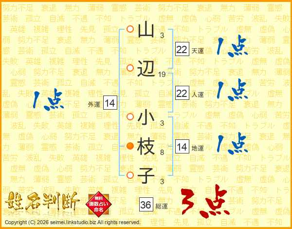 山(3画)辺(19画) 小(3画)枝(8画)子(3画)